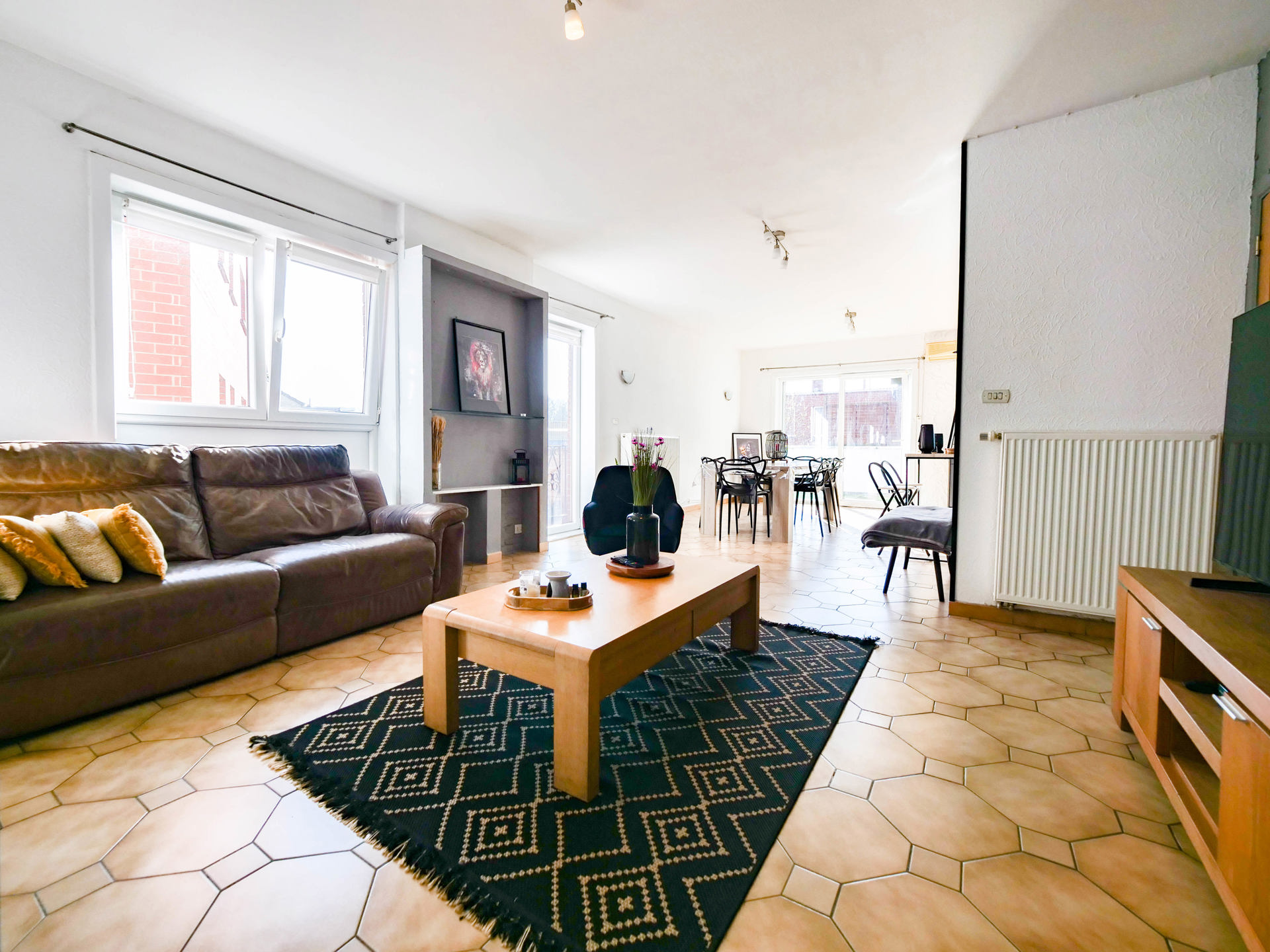 MG SPRIT- VENDU EN 24H! Valorisez votre vente au 0474240854! MG Spirit vous propose ce très bel appartement, plein d'atouts, à la vente. 95 m2 habitables, une grande terrasse de 40M2, de très faibles charges communes (65€/mois), une rentabilité d'investissement de 6,5%, une petite copropriété (5 unités), PEB B ET.... ELECTRICITE CONFORME. Situé au 1er étage, il se compose d'un hall d'entrée avec vestiaire, d'un vaste living salon/salle-à-manger de 37m2 hyper lumineux et qui donne sur une grande terrasse en partie couverte et orientée SUD, une cuisine bien équipée (LV, hotte, frigo, taque) avec un coin bureau et une buanderie, un hall de nuit, 2 chambres (9 et 13,5m2) et une grande salle de bains : WC, douche et baignoire. Compteurs séparés, chauffage gaz, chaudière à condensation Vaillant récente, châssis PVC DV, parlophone, loué actuellement 750€ hors charges. Idéalement situé à moins de 5 minutes des autoroutes, desservi par les transports en commun et proche des écoles et commerces. Faire offre partir de 119.000€. Une vraie pépite que ce soit pour investir ou pour y vivre! Contactez-moi vite au 0474/24.08.54 ou via info@mgspiritimmo.com pour en savoir plus ou planifier une visite!